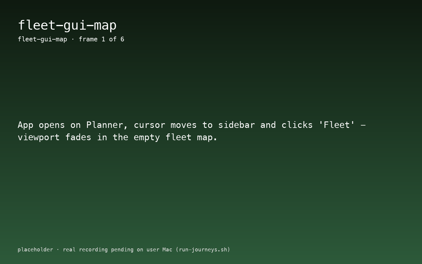 Journey ID: fleet-gui-mapStatus: Implemented (placeholder artefacts — real recording pending on user Mac) Last Updated: 2026-04-19